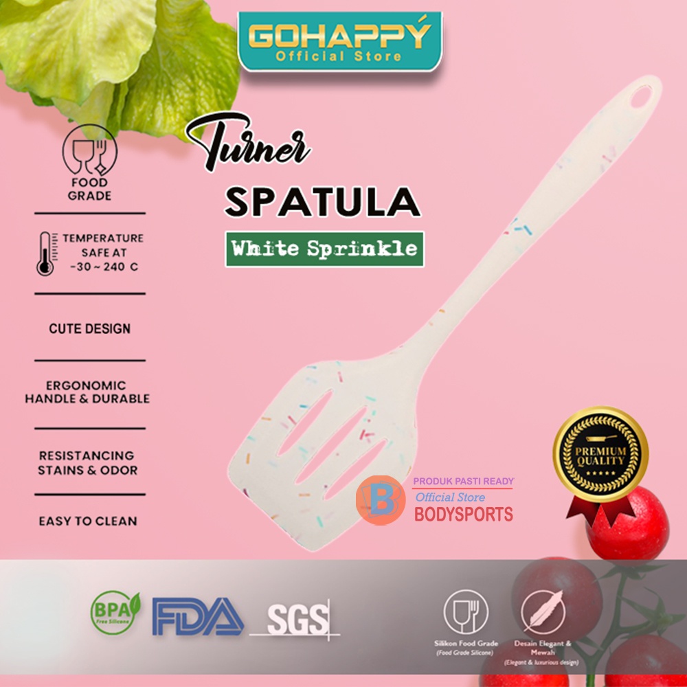 Alat Dapur SPATULA TUNNER SENDOK MASAK DAPUR BERBAHAN SILICON 2041SPATULA SILIKON sprinkle white 2041 Turner Sutil silicone tahan panas BPA Free adalah alat masak premium yang aman untuk kesehatan (PFOA Free) serta dapat memasak tanpa minyak.Bahan silicon food grade sehingga tidak panas pada saat digunakan dan cocok untuk digunakan dalam jangka waktu lamaBisa digunakan pada permukaan panci panas sampai suhu 300 derajat Celcius tanpa berubah bentukCocok untuk digunakan pada semua alat masak dengan lapisan anti lengket (non-stick)Bebas dari BPATidak mudah melelehSpesifikasi:- Desain konfeti- Silikon tahan panas tinggi- Tidak mudah berubah warna- Tidak akan menggores peralatan masak- Bisa di basuh dengan mesin pencuci piring- BPA Free aman untuk kesehatan- Panjang: 30.5 cm- Tinggi: 8 cmSaran Perawatan :Sediakan air hangat, sabun pencuci piring dan jeruk nipis (bila memasak makanan yang bersifat amis. Siapkan jeruk nipis lebih banyak sesuai kebutuhan untuk menghilangkan bau tidak sedap.Angkat tongs dari air hangat lalu oleskan jeruk nipis pada seluruh kepala spatula yang terkena makanan dan diamkan sebentar.Basuh tongs dengan air hangat (setelah didiamkan sekitar 15-30 menit, jangan dibasuh dalam keadaan panas) untuk noda membandel disarankan untuk merendam dengan air hangat dan diamkan sebentar.Perhatian :Jangan meletakkan dan didiamkan di dalam panci yang berminyak panas atau meletakkan di pinggir wajan karena akan merusak lapisan silikon luar dan meleleh bila didiamkan dalam waktu lamaHAPPY SHOPPIN