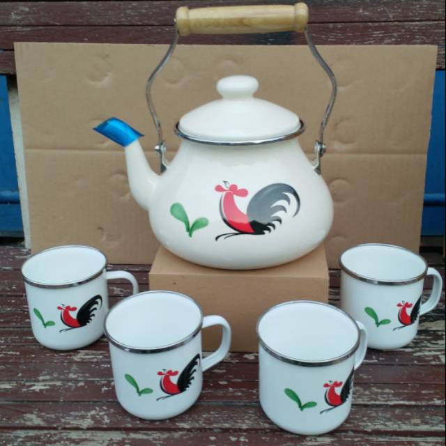 Name: Teko Enamel 2,5f Ayam + 4 Mug